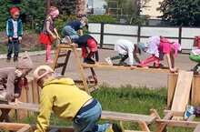 Дети заняты продуктивной деятельностью на прогулке. Они не только планируют свою деятельность и играют самостоятельно, но и обыгрывают ситуации с созданными конструкциями