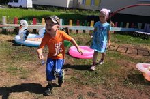 В нашем ДОУ летний период считается как наиболее благоприятный период для укрепления здоровья и физического развития детей. Главная задача детского сада – оздоровление детей, так как давно доказано, что все закаливающие мероприятия лучше начинать летом. Благодаря усилиям и работе педагогического колектива , на териториии детского сада появились басейны в которых воспитанники в жаркие деньки могут поиграть с водой.