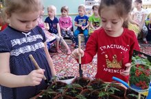 Воспитанники средней группы №2 занимались посадкой лука. Выращивание огорода в детском саду полезно тем, что оно развивает любознательность и наблюдательность у детей, помогает им лучше познать жизнь растений. Вырастить что-то всегда интересно, каждый день измерять ростки линейкой и фиксировать полученные данные в специально, оформленную для наблюдений книжечку.