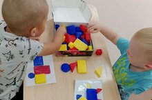 Не смотря, то что ещё летний период, малыши группы Соловушка закрепляют уже с познакомившимися геометрическими фигурами квадрат, круг, треугольник. Были проведены весёлые игровые занятия.