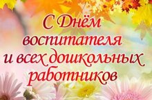 Администрация и коллектив детского сада поздравляют с Днем воспитателя и всех дошкольных работников! От всей души желаем счастья, радости, чудес, терпения, удачи, сил и вдохновения, достатка, мира, гениальности идей, волшебных моментов в жизни и значительных успехов в воспитании детей. Здоровья вам и всего самого доброго.