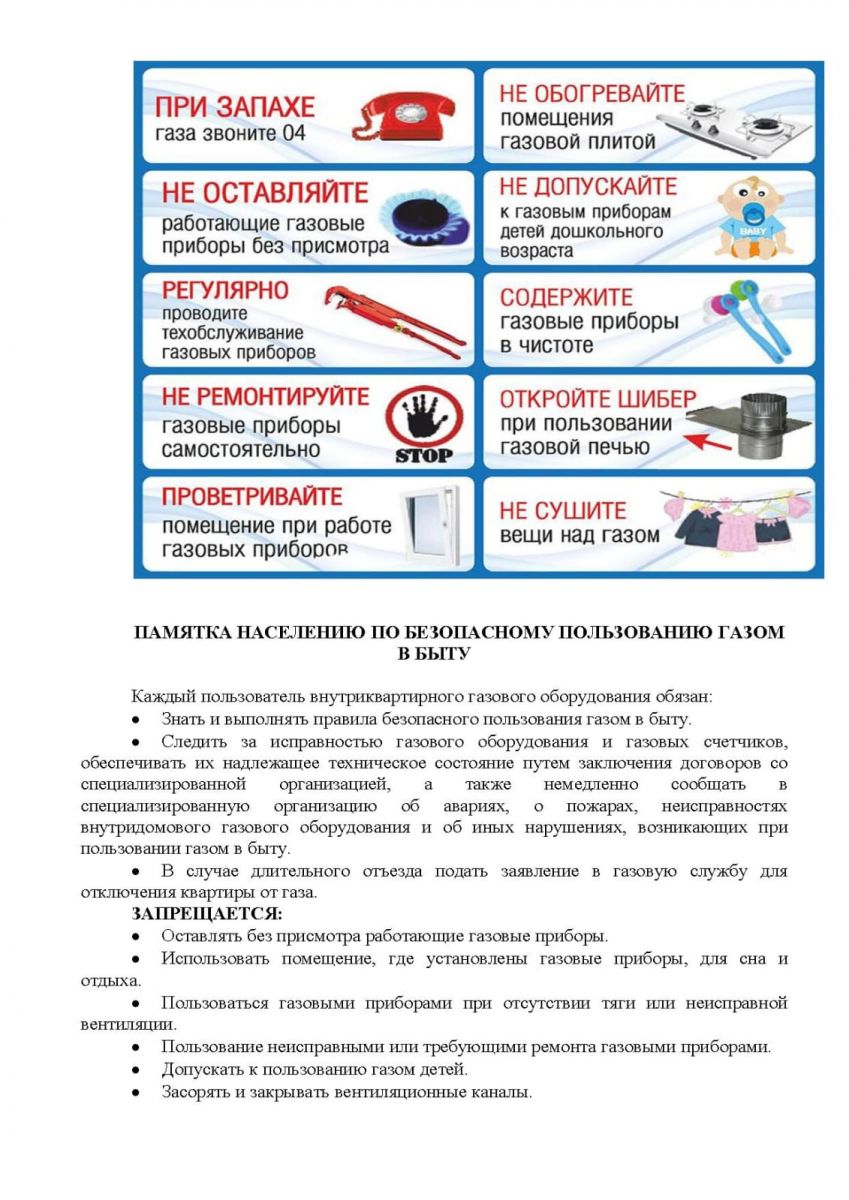 Памятка для родителей по безопасному использованию газа в быту