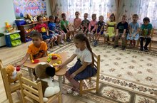 Дети старшей группы № 13 в рамках тематической недели "Осень, осень, в гости просим!" закрепили слова на татарском языке в игре "Есть красивый огород".