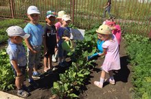 В нашем детском саду есть огород, где дети ухаживают за огородными растениями.