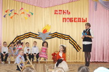 Сегодня в нашем детском саду прошёл утренник, посвященный Дню Победы в Великой Отечественной Войне. В торжественной обстановке дети читали стихотворения, пели песни военных лет, танцевали. По традиции все участники праздника почтили память погибших минутой молчания.