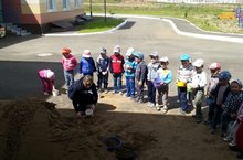 Вот и сегодня воспитанники средней группы помогали воспитателю Екатерине Николаевне перенести песок в песочницу.