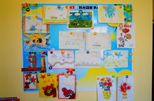 Воспитанники подготовительной к школе группы №13 организовали выставку детских рисунков на тему "70 лет Великой Победы".