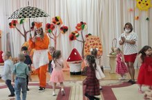 В нашем детском саду проходят осенние праздники для всех возрастных групп. Красавица Осень заглянула в каждую группу и к большим и к маленьким, никого не оставила без внимания! И, несмотря на то, что осень называют «унылой порой», тем не менее, кто как не дети больше всего радуются яркому цвету этого времени года.