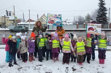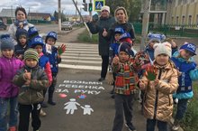 В ходе акции, воспитанники детского сада вместе с педагогами оформили надпись на асфальте «Возьми ребенка за руку». А также напомнили взрослым о правилах безопасности при переходе через дорогу.