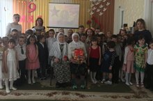 Педагоги детского сада «Садко» по сложившейся традиции вместе со своими воспитанниками по-особому отмечают этот праздник. В канун празднования годовщины Великой Победы в гости к ребятам пришла ветеран ВОВ Ахметзянова Хадича Хакимовна. Приглашая к себе, эту уважаемую и почитаемую женщину, мы задумывались над тем, как же она донесет дошколятам события тех далеких лет. И к всеобщему удивлению ветеран нашла такие слова, что дети слушали ее, затаив дыхание, а у педагогов и глаза наполнялись слезами.В благодарность за нашу спокойную жизнь, ребята приготовили для нашей гостьи небольшой концерт: стихи, песни и танцы тронули до глубины души Хадичу Хакимовну.