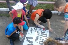 В рамках проведения Всероссийской акции по безопасности дорожного движения "Внимание, дети!" На базе МБДОУ № 9 "Садко" прошла городская акция "Возьми ребенка за руку!". Наши воспитанники продолжали участие в этой акции и передали трафарет первоклассникам СОШ № 1 для нанесения в жилом квартале около своей школы.