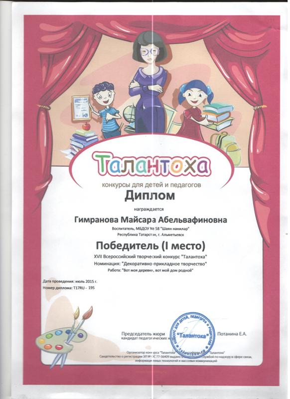 Муниципальное бюджетное дошкольное образовательное учреждение «Детский сад комбинированного вида № 58 «Шаян нэнилэр» Альметьевского муниципального района Республики Татарстан»//«Татарстан Республикасы Әлмәт муниципаль бюджет мәктәпкәчә белем бирү учреждениясе 58 нче катнаш төрдәге «Шаян нэнилэр» балалар бакчасы»