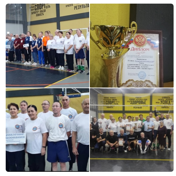 12 ноября 2022 г. сборная команда ветеранов педагогического труда Управления образования АМР приняла участие в соревнованиях по волейболу в зачет ХII спартакиады Альметьевского Муниципального района среди ветеранов (пенсионеров) «Третий возраст», проходивших в спорткомплексе «Мирас» г. Альметьевска. В результате упорной борьбы между сильнейшими командами города, сборная Управления образования заняв первое место, стала трехкратным победителем! Команде, в составе представителей школ: №1, №2, №7, №15, №17, Тат.гимназии №1, Маметьевской, Новокашировской, Старомихайловской, Сулеевской, вручен кубок и диплом Совета местной общественной организации ветеранов (пенсионеров) АМР.