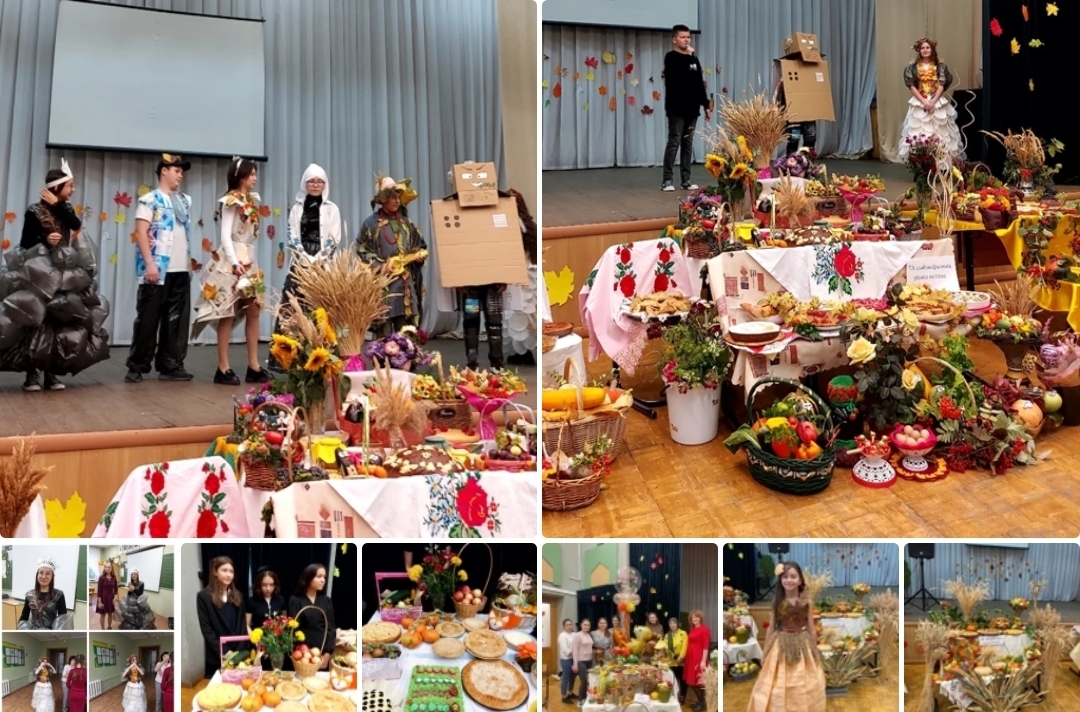 Каждый класс представлял “Дары осени”, а самым запоминающимся было дефиле «Королевы осени». Наряды, в которых выступали юные модницы, были по-осеннему красочными и необычными.