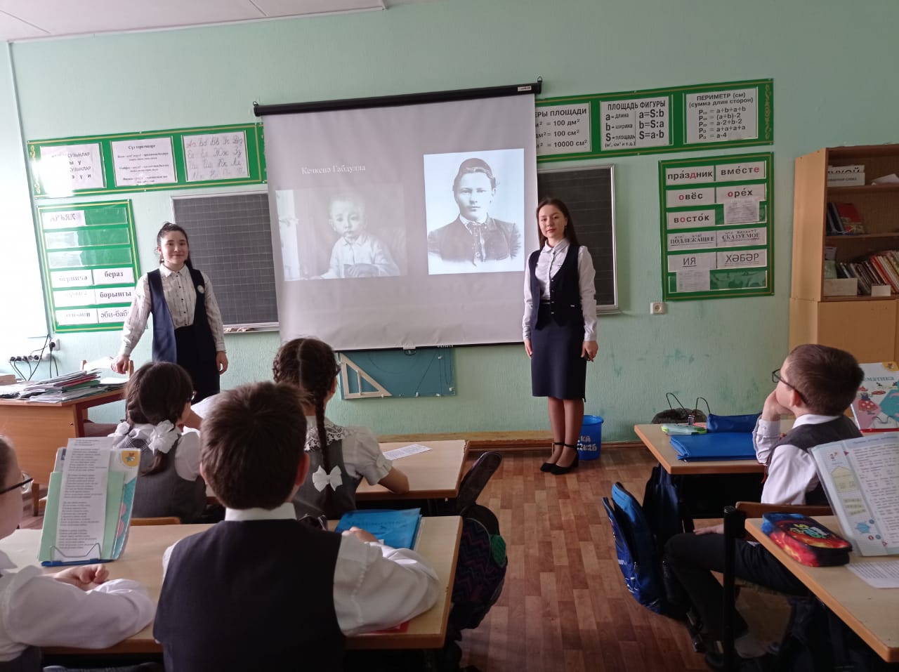 4 Б класс в детской городской библиотеке № 8 им.Р.Тухфатуллина.Мероприятие, посвященное Дню рождения Габдуллы Тукая.