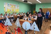 24 сентября в рамках Всероссийской недели безопасности на базе МБОУ «Гимназия №1 им.Р.Фахретдина» проведено открытое внеурочное занятие по правилам дорожного движения для учащихся 2 -3 классов «Дорожная гостиная» с привлечением отряда ЮИД «Машина времени», где присутствовали директор АФГКУ ГБУ «Безопасность дорожного движения» Л.М Рафигуллина, сотрудник УГИБДД, старший инспектор г. Казани РТ, инспектор ГИБДД Л.Н.Демьянова. Во второй части занятия члены отряда ЮИД «Машина времени» организовали для участников проекта экскурсию: ознакомили со стендами и плакатами по безопасности дорожного движения. Занятие у всех оставило очень хорошее впечатление. Все остались довольны. Гости отметили качественные знания у учащихся.