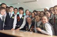 Встреча с ветеранами 07.05.2015Накануне Дня Победы учащиеся 5 Б класса встретились с ветераном Великой Отечественной войны Яхиной Фатымой Яхиевной. Начали встречу со стихов и песен, посвященных войне, а затем слово предоставили гостье. Ребята с интересом слушали ее воспоминания о дорогах войны, по которым она прошла в качестве зенитчицы, о трудностях, которые выпали на долю совсем юных девушек и юношей, разглядывали фотографии однополчан, задавали вопросы. В конце встречи сделали несколько фотографий на память.