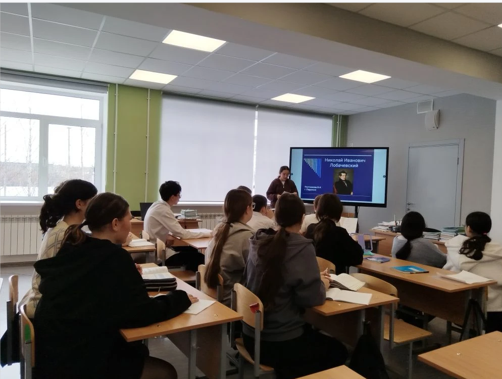 Учащиеся 8 класса, под руководством учителя математики Фаттаховой Г.Х. и советником директора по воспитанию Галимовой А.С.провели урок, посвященный Н.И.Лобачевскому.