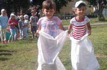Для детей был организован национнальный праздник Сабантуй. Дети приняли участие в таких играх, как бег с яйцом, бег в мешках, перетягивание каната, борьба на бревне мешками и срезание сладких призов! Дети остались довольные, особенно после сладких призов.