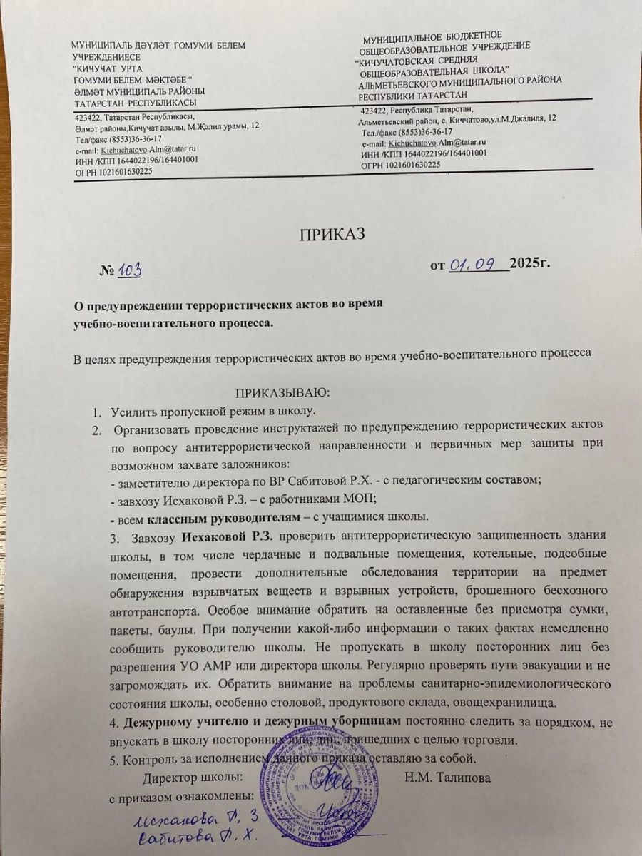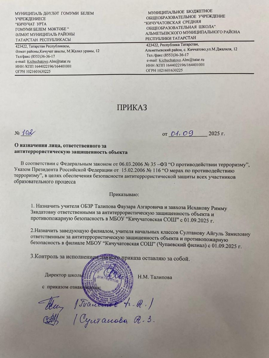 Муниципальное бюджетное общеобразовательное учреждение "Кичучатовская средняя общеобразовательная школа" Альметьевского муниципального района Республики Татарстан