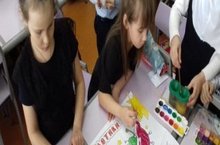 Конкурс рисунков «Мы рисуем космос». Ученики просмотрели познавательный мини-фильм про космос. После этого каждый ученик выбрал себе рисунок и раскрасили акварельными красками.Так же изготовили совместно стенгазету ко дню Космонавтики.