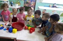 Дети второй младшей группы познакомились со свойствами воды и экспериментальным путем выяснили, что тяжелые предметы тонут, а легкие - плавают, и поиграли в игру "Спрячь рыбку"
