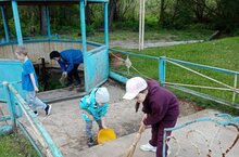 Воспитанники нашего детского сада провели уборку территории у родника имени Клары Булатовой: собирали ветки, сорняки и мусор подметали.