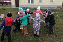 Наши ребятки сегодня на прогулке с удовольствием играли в игру " У медведя во бору". В подвижных играх малышей, как правило, проявляется не общение со сверстниками, а отображение той жизни, которой живут взрослые или животные. Дети в этом возрасте с удовольствием летают как воробушки, прыгают как зайчики, взмахивают руками как бабочки крылышками. Благодаря развитой способности к имитации большинство подвижных игр детей младшего дошкольного возраста несут в себе сюжетный характер.