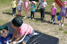 Сегодня в нашем детском саду прошел татарский праздник "Малый сабантуй". Ребята с большим удовольствием принимали участие в различных соревнованиях: играли в татарскую игру "Тюбетейка", мальчики соревновались в татарской борьбе " Корэш", беали в мешках, соревновались в беге с ложками., срезали сладкие призы, с большим интересом и увлечением приняли участие в игре "С закрытыми глазами", каждый попытался с завязанными глазами ударить палкой по ведру, понравилось перетягивание каната. Очень весело прошел у нас Сабантуй- самый любимый праздник татарского народа.