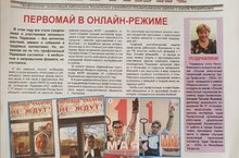 В газете "Профсоюзный вестник" опубликовали флешмоб "Первомай" работу нашего воспитателя Нуждиной Л.А. и ее сына Дениса.