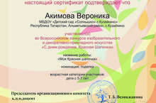 23 февраля наша воспитанница Акимова Вероника участвовала во Всероссийском конкурсе изобразительного и декоративно-прикладного искусства "С днем рождения,Красная Шапочка!"