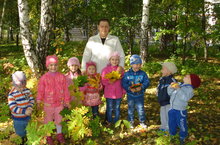 Ребята вместе с воспитателем Нуждиной Л.А. совершили осеннюю прогулку в парк Кузайкинской участковой больницы.