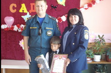 30.05.2014 года в МБДОУ «Детский сад «Солнышко « с.Кузайкино» старший инспектор ОНД по Альметьевскому муниципальному району УНД ГУ МЧС России капитан внутренней службы Бибиков А.Н. и старший инспектор ВДПО Нуруллина Г.Р. наградили воспитанника нашего детского сада Зеляева Рамазана, занявшего 3 место на республиканском этапе Всероссийского конкурса детско- юношеского творчества по пожарной безопасности в номинации «Художественно-изобразительное творчество»