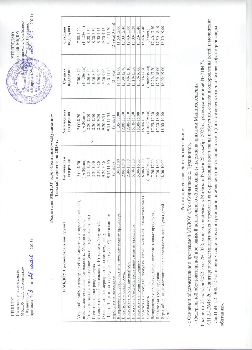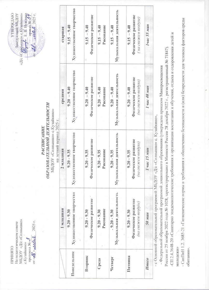 Приказ о переходе на летний оздоровительный период 2025 г.