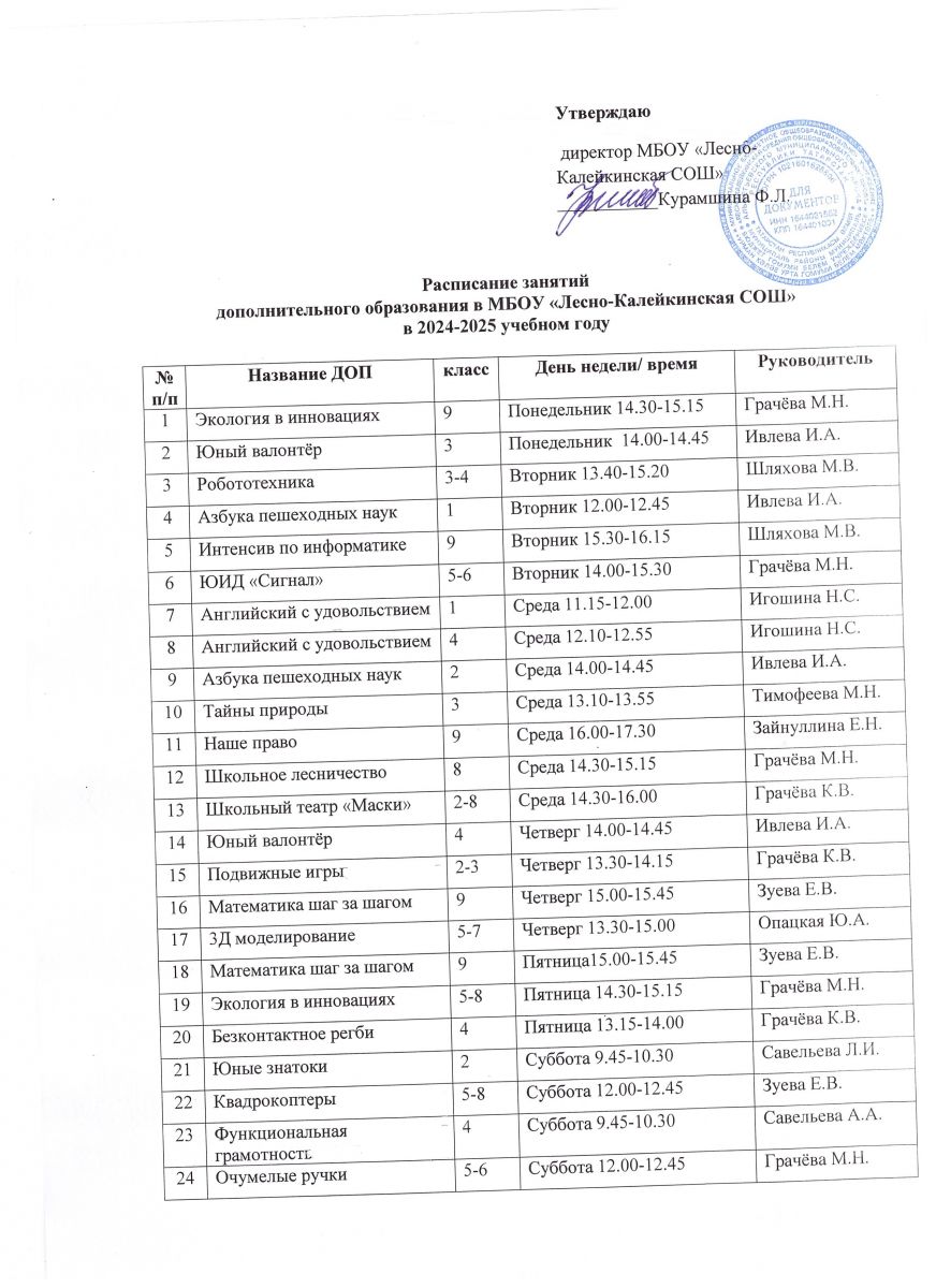 Расписание занятий ДОП на 2024-202 уч.год