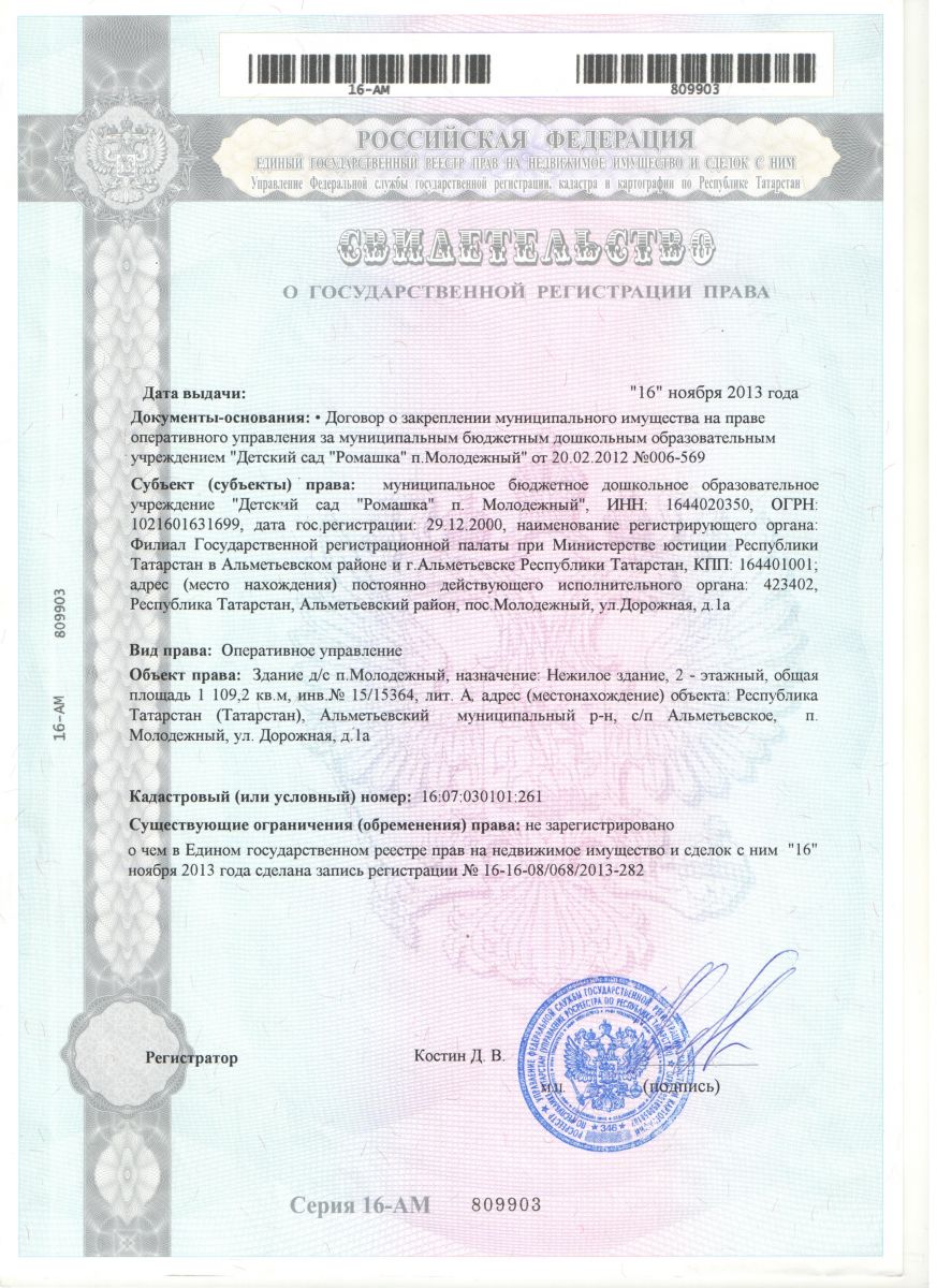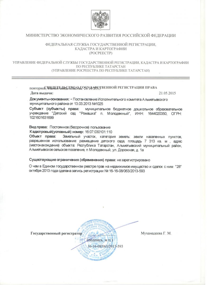 Муниципальное бюджетное дошкольное образовательное учреждение «Детский сад «Ромашка» п. Молодежный» Альметьевского муниципального района Республики Татарстан //“Татарстан Республикасы Әлмәт районы Молодежный поселогы балалар бакчасы “Ромашка” мәктәпкәчә белем бирү муниципаль бюджет учреждениесе”