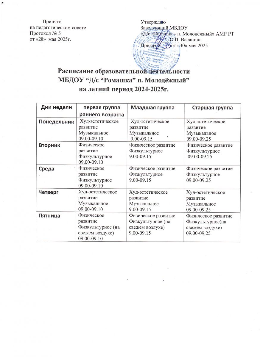Приказ "Об организации работы детского сада на летний оздоровительный период" на 2025 год