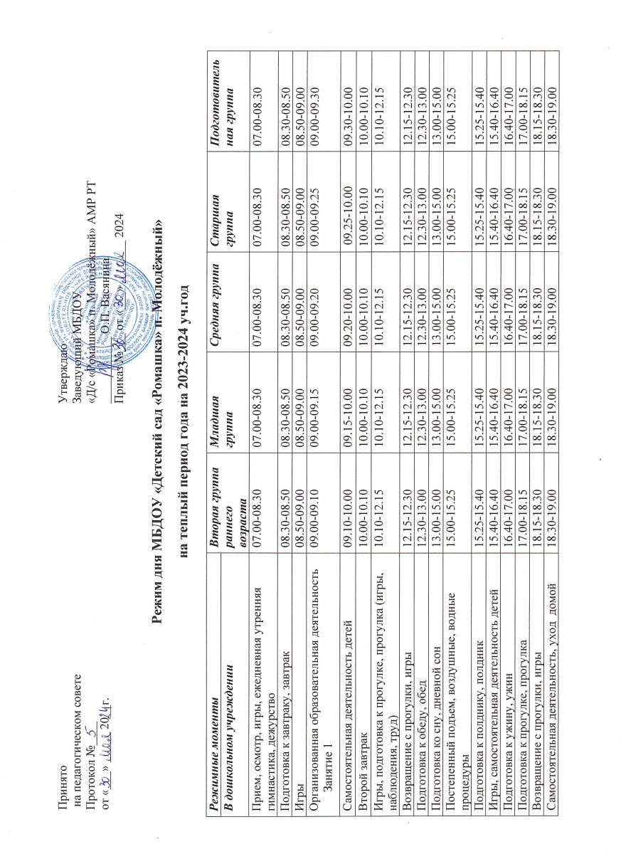 Приказ "Об организации работы детского сада на летний оздоровительный период " на 2024 год
