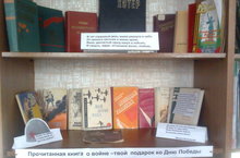 В нашей школьной библиотеке проходит книжная выставка, посвящённая 70- летию Победы в Великой Отечественной Войне «70 лет - Великой Победы». Школьникам будет интересно узнать, как воевал русский народ с фашистскими захватчиками, каким трудом и потом досталась Великая Победа. Общим девизом послужат слова: «Прочитанная книга о войне - твой подарок ко Дню Победы».