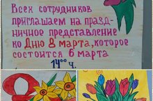 Любимые наши мамы, бабушки, сестрички и дорогие женщины! Спешим Вас пригласить на чудесное торжество в честь праздника 8 марта. Дети очень старались, поэтому наш праздник Вас приятно удивит. -