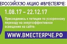 О проведении социальной кампании в поддержку Всероссийского фестиваля энергосбережения «Вместе ярче» с 1.08.2017 по 22.12.2017.