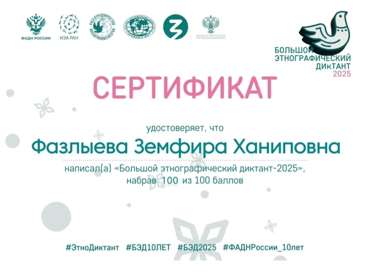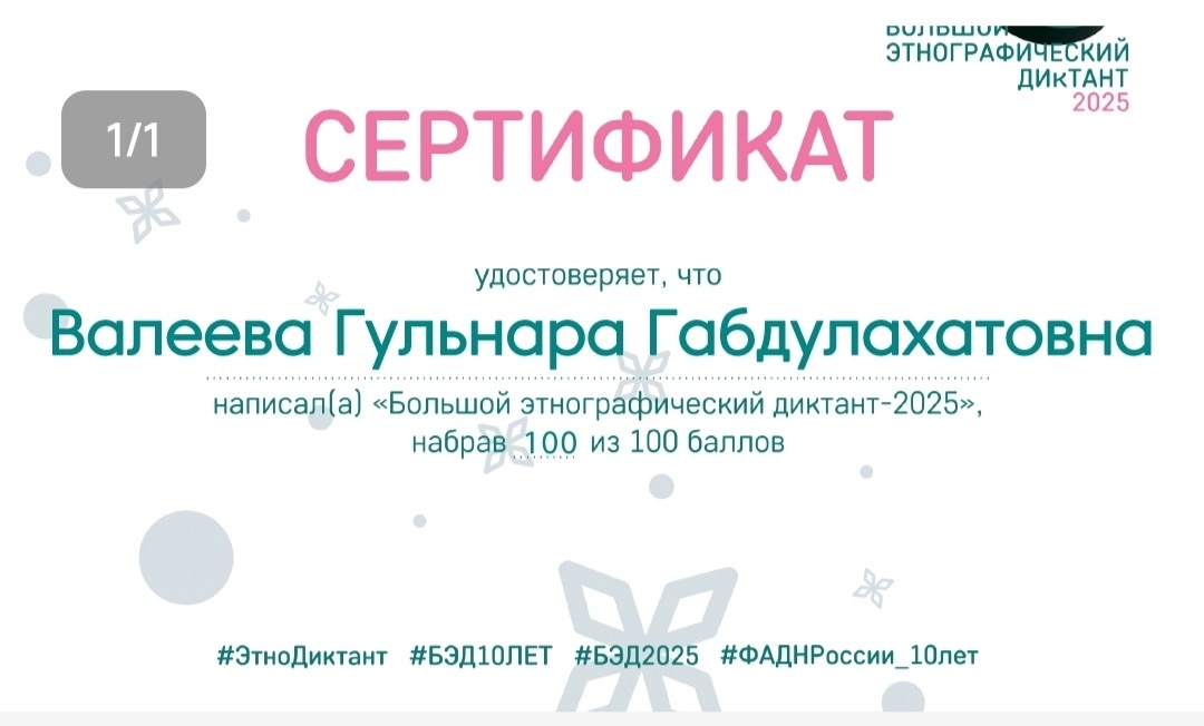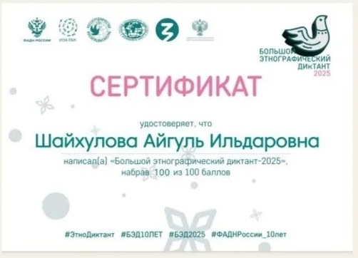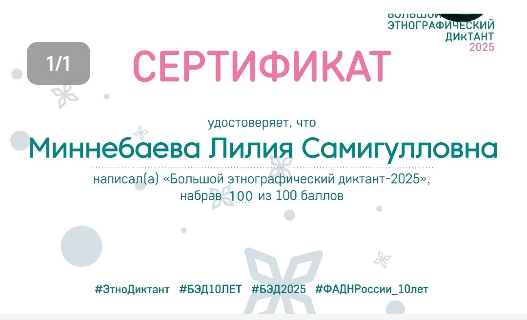 С 1 по 8 ноября можно было проверить свои знания о культуре и истории народов нашей страны на «Большом этнографическом диктанте» Педагоги МБОУ "Новокашировской СОШ" приняли активное участие.
