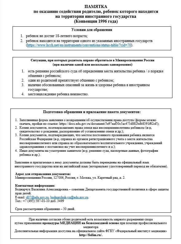- Оказание содействия гражданам в случае международного похищения детей 07.08.2020