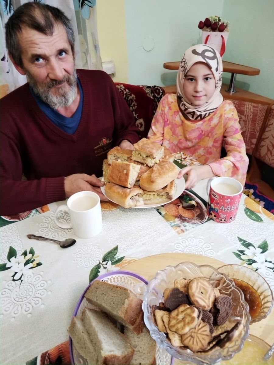 Ученики 1 и 7 класса - Гимрановы Лиана и Реналь вместе с папой весело и вкусно проводят время