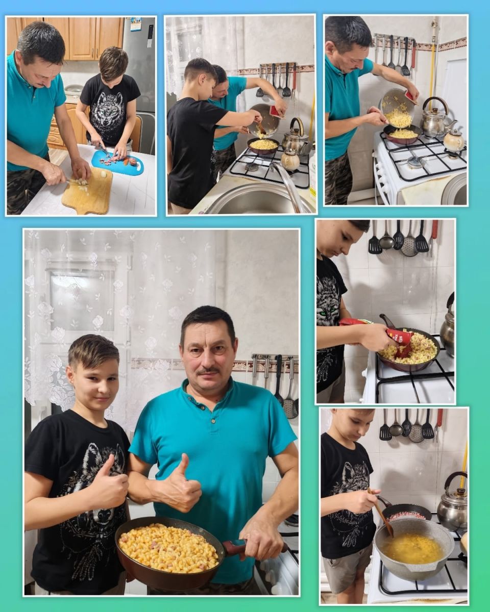 Ученик 8 класса - Хайруллин Ислам вместе с папой готовят ужин для всей семьи