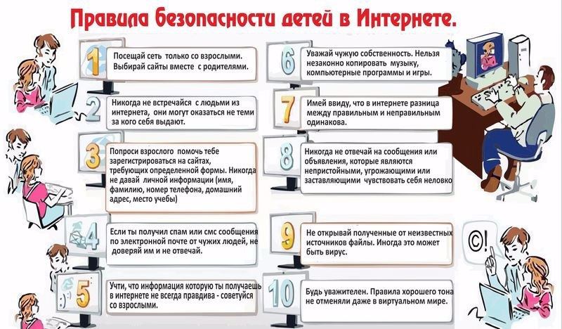 1. Всем подряд сообщать свою частную информацию (настоящие имя, фамилию, телефон, адрес, номер школы, а также фотографии свои, своей семьи и друзей);