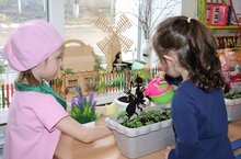 Акция «Посади цветок - укрась планету» 14.04.2025В феврале в МБДОУ «Д/с № 62 «Тирэк» началась акция «Огород на окне», в которой приняли участие педагоги, дети всех возрастных групп и их родители. Во всех группах детского сада появились небольшие «огороды на окне». В них представлено видовое разнообразие огородных растений, посадка овощных культур: лук, петрушка, огурцы, фасоль, морковь, свекла. Дети с интересом наблюдают за ростом растений и все свои действия они фиксировали в дневник наблюдения, зарисовывали этапы роста овощей. Ближе узнать природу, подружиться с ней и полюбить детям помогают, ее друзья и защитники природы «Эколята - дошколята».Сегодня в саду прошла акция «Посади цветок - укрась планету!», где дети посадили семена цветочных растений: астра, бархатцы, петунья. Акция продлится до мая месяца – дошкольники вместе с воспитателями будут выращивать цветы: наблюдать, ухаживать за ними, а затем высадят на клумбы в открытый грунт. Цветы, посаженные ребятами с любовью и старанием, несомненно, станут украшением прогулочного участка и будут радовать взрослых и детей. А еще ребята сделали вывод, что цветы - это не только красота, но и часть живой природы, которую надо беречь, охранять и приумножать. В акции приняли участие 56 детей и родителей, 4 педагога. ФОТОГАЛЕРЕЯ