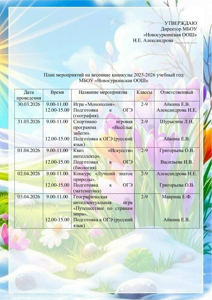 Ждём вас на мероприятиях! Уверены, что весенние каникулы станут ярким и запоминающимся событием в жизни каждого ученика.
