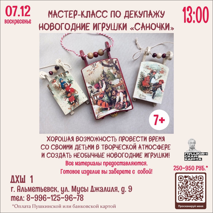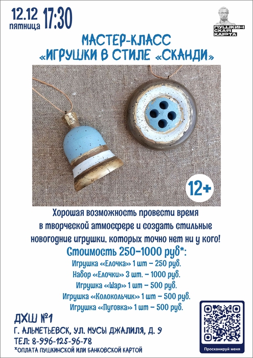 Изученные техники вы сможете применять не только в декоре новогодних игрушек, но и в интерьере.Адрес: ДХШ №1, ул. М.Джалиля, 9