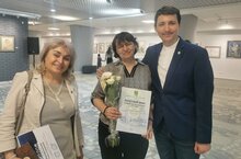 На выставке председатель Татарстанского регионального представительства Международного союза педагогов-художников Гюзель Тахировна Шарафутдинова вручила Шабаловой Ольге Петровне Почётный знак " Лучший педагог-художник 2025 года" (г. Москва).